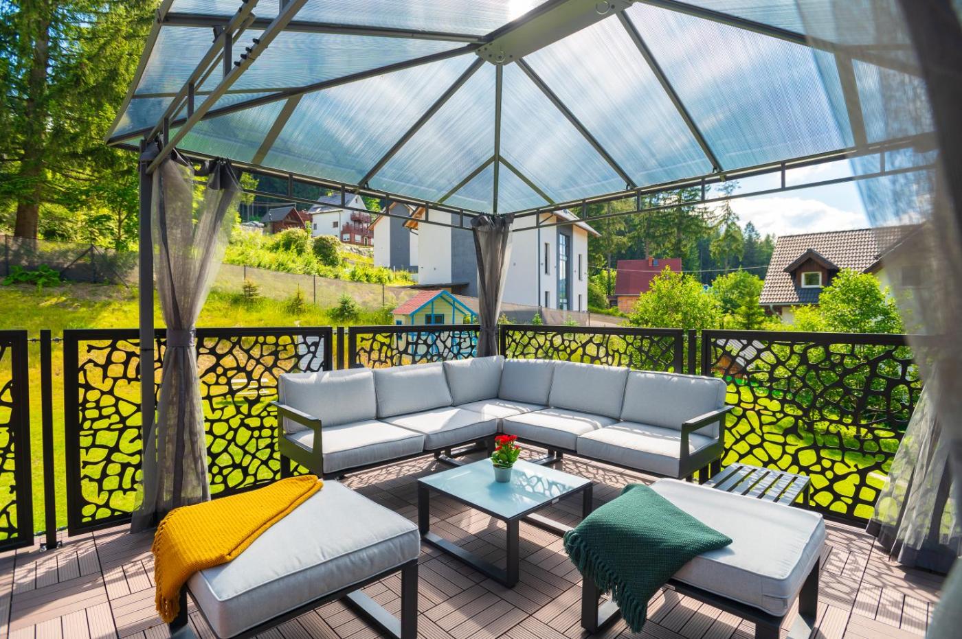 Willa typu Deluxe. Ta przestronna willa dysponuje oddzielnym wejściem i mieści salon, 5 oddzielnych sypialni oraz 2 łazienki z prysznicem. Posiłki można przygotowywać w dobrze wyposażonej kuchni z płytą kuchenną, lodówką, zmywarką do naczyń i przyborami kuchennymi. Udogodnienia obejmują taras z widokiem na ogród, pralkę oraz telewizor z płaskim ekranem i dostępem do serwisów streamingowych. W tej opcji zakwaterowania zapewniono 8 łóżek. Willa - 12 osobowy. Powierzchnia pokoju ok.: 240 mkw.