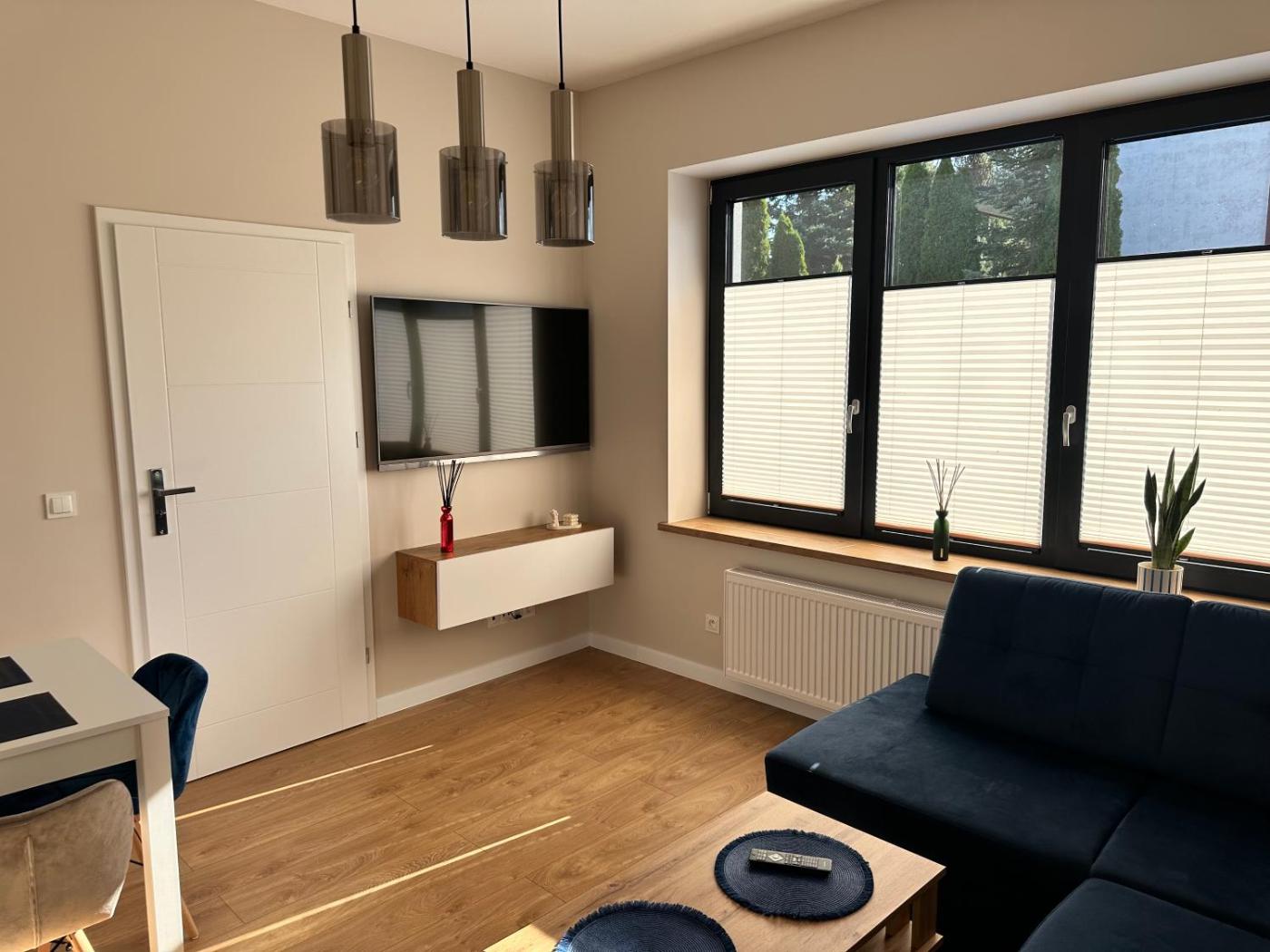 Apartament z 2 sypialniami. Boasting a private entrance, this apartment also comes with 1 living room, 2 separate bedrooms and 1 bathroom with a walk-in shower. Meals can be prepared in the kitchen, which features a stovetop, a refrigerator, a dishwasher and kitchenware. The apartment features a flat-screen TV with streaming services, a washing machine, a coffee machine, a wardrobe as well as garden views. The unit has 3 beds. Apartament - 6 osobowy. Powierzchnia pokoju ok.: 53 mkw.